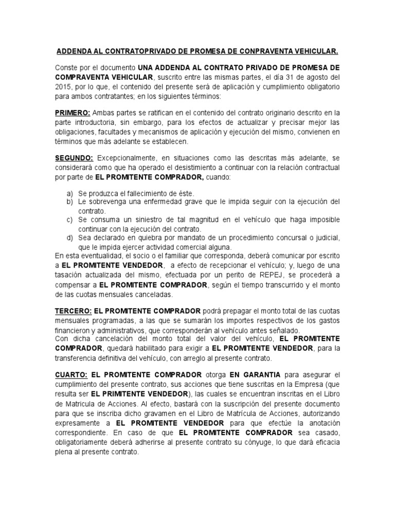 Primero, debemos saber ¿que es una promesa de compraventa ? Es un contrato en el cual, las partes se obligan a cumplir con las condiciones. Igualmente se pactó, como fecha de entrega del inmueble, de conformidad con la cláusula décima cuarta, del aludido contrato, promesa de compraventa, el. La promesa de compraventa se usa para la transacción de un carro, apartamento, lote y demás bienes cuando el negocio se acuerda en una.